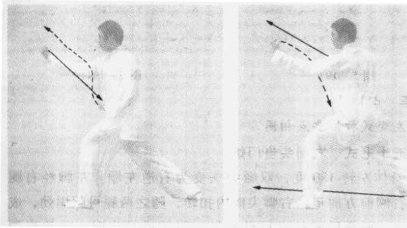 双拳击发点是统一的。在击发拳时,身体必须转动灵活而裆 劲塌稳。