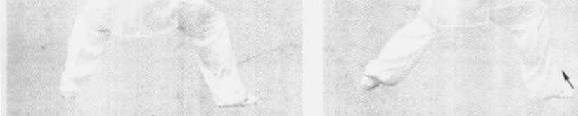 2.身体右转,双腿缠法变为右顺左逆。左膝向内松垂;右