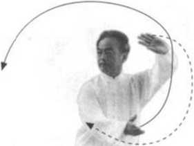 【要 点】 这动作练时速度较快。要求:左手上棚领劲,先合后开, 迈步要轻灵,右臂、右腿要“上引下进”。