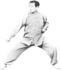 时,右手四指蜷曲,拇指横贴 于四指中节,拳不可太紧,也 不可太松,适可而止。向身体 前下发为栽拳。在发右栽拳 时,左臂也要做好相应的配 合,发背靠劲或后肘劲均可。