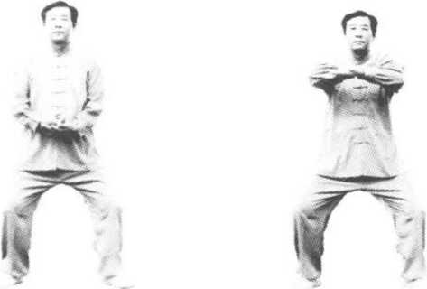 所谓穿掌是双手在胸前交叉,无论向身体哪 一侧走化,都是穿掌解脱之意,此势多用于金刚捣 碓变拦扎衣一势。