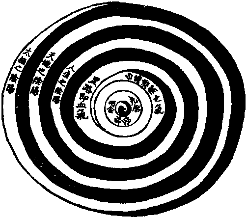 外三大圈推阴阳所自始,内三圈言阴阳有所宰。内 三圈皆在第三圈,人所秉受之中,本不必再图。恐打拳 不知理以宰气之故尔,非另外别有一图也,姑图之令人 易晓。要之内三圈皆在第三圈之中,第三圈皆在第二圈 之中,第二圈皆在第一圈之中。此图专言卫生之本、还 气妙诀。能善运气,始能卫其生命;能卫生命,则复性 有所资养,气有所赖矣。此太极拳是有益于身心性命之 学。圣贤言修身在复性,此言卫生运气以为修身复性之 本。未知是否,姑为图说,以留笑柄。