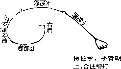 此是手从东方收回,沿路所走之形。
