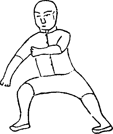 r右膝屈住、撑开,与左膝合