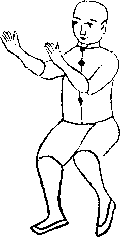 上下缠丝精与一切法律,皆与前白鹅亮翅同。左足 去右足三五寸远,足趾倒点于地,是虚步,为下搂膝拗 步设势。右足向右开步,指向西北,平实踏住。
