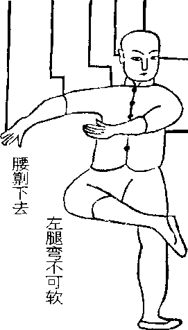 一木能支广厦倾(一木喻左腿,广厦喻众体),上抬右 腿一剑横。左右两手左右击,先置死地后求生。