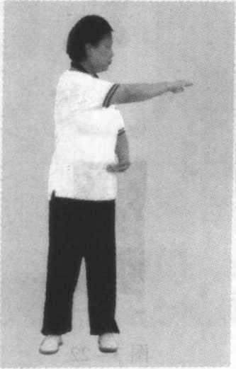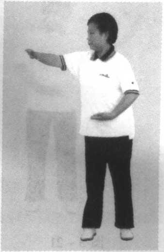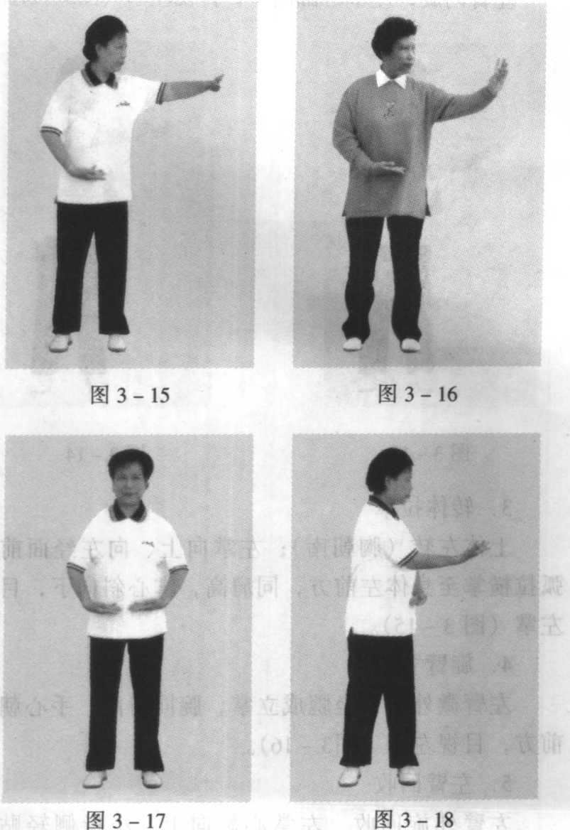 部,掌指斜朝前,目随视左掌(图3-17)0