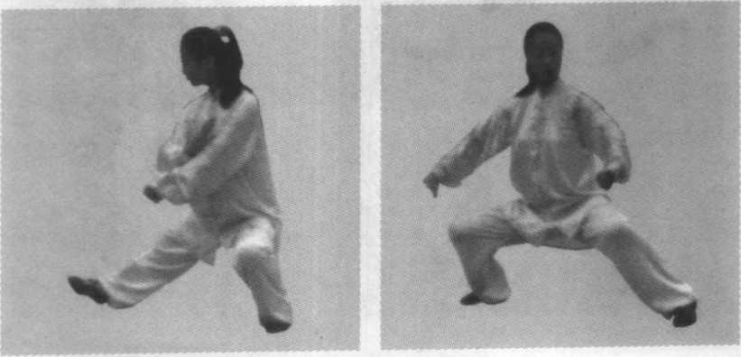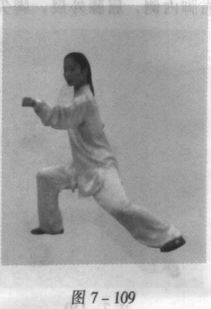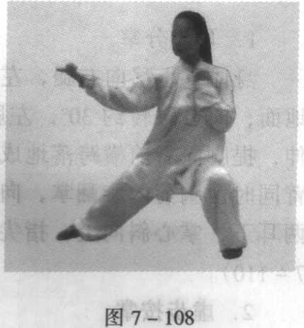 图 7-106图 7-106图 7-107图 7-107身体重心右移,右脚尖内扣落地,腿屈蹲成右偏