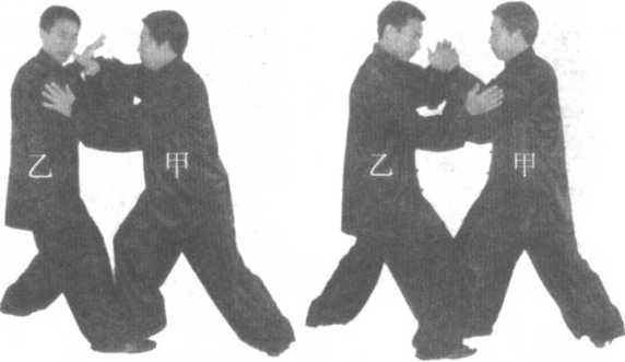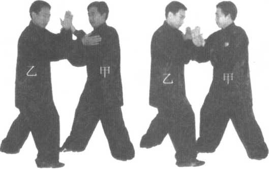 甲乙双方同时上左脚的练法与上面两种练法相同。