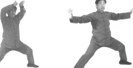2.此势是初次收回琵琶之意,要求运用右腿下挫后的弹性劲和两手微小的左逆右顺的缠丝劲使身体旋转而上,成 独立姿势。