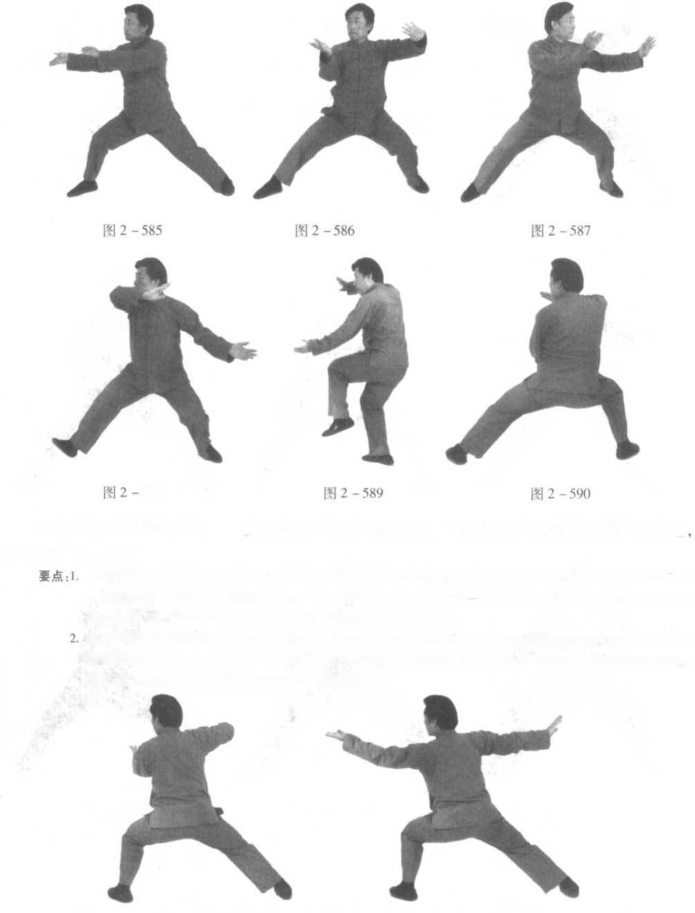 口令1 (图2 -577至580) 身体稍左转,提右腿向右侧横开一大步,脚跟着地,同时左手