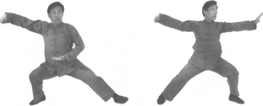 右侧。重心左移,同时双手向左上方发力,左掌略向内勾,右掌心向外(面向西北)。