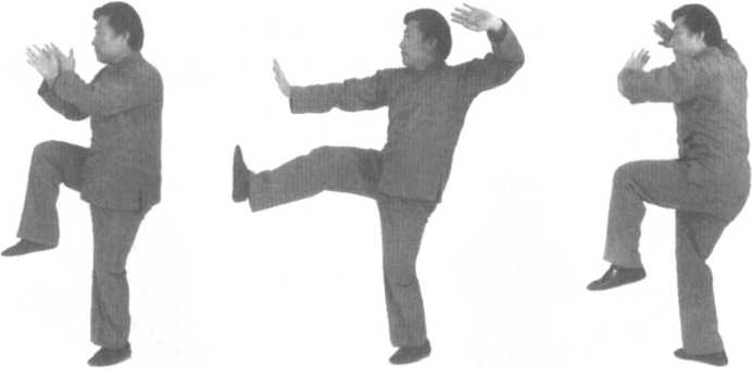 要点:使身肢搠劲的弹性加强,须以两臂微张而合的领劲与左腿的上弹劲,将身体?领而跃起,然后自然先后落地