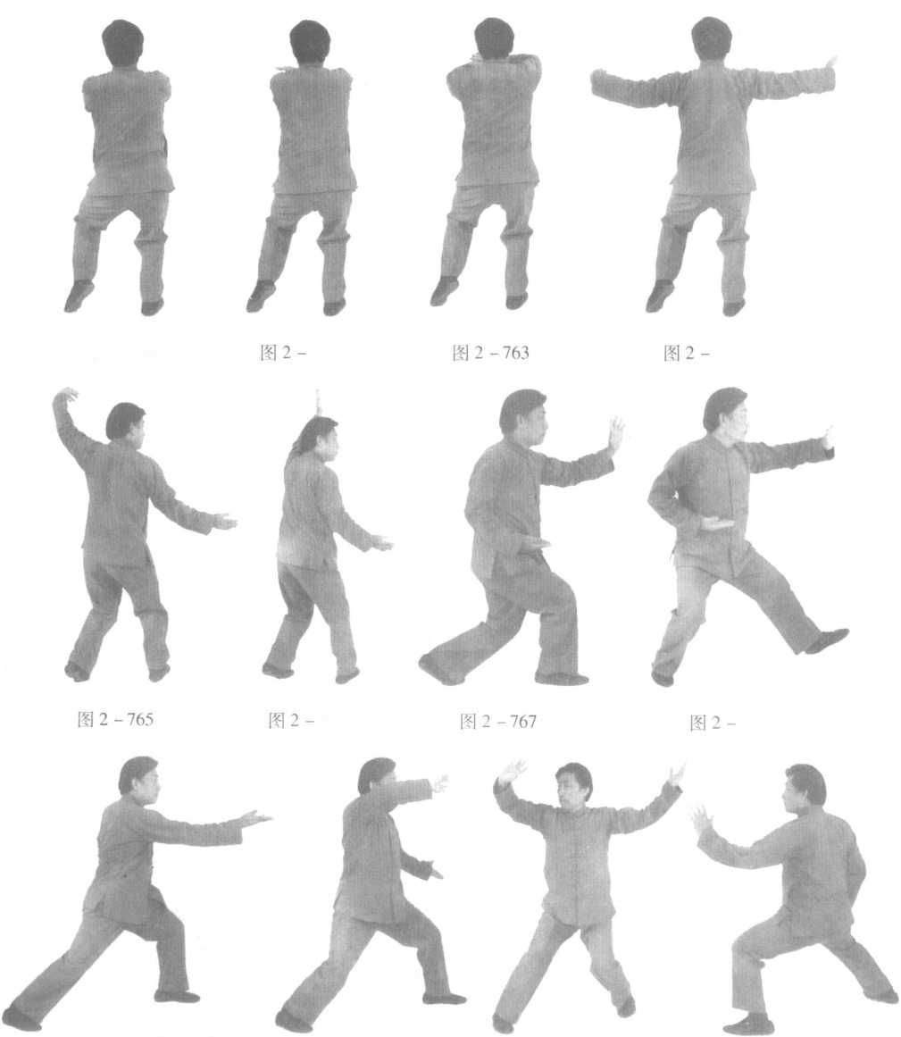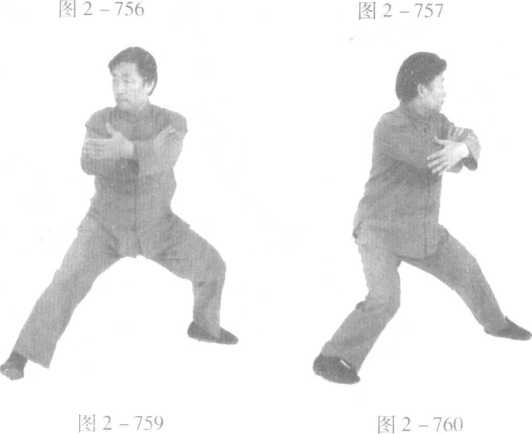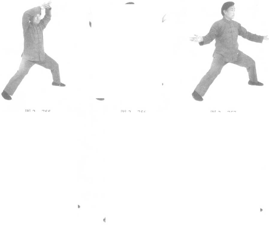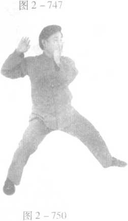 (图2 -744至754) 口令动作与第二十六势“斜行拗步”相同