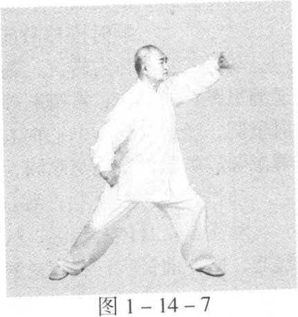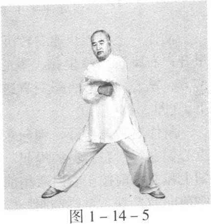 动作二至动作五与第十四势掩手肱锤动作二至动作五相同。 (图 1 一 14-4)至(图 1 - 14- 10)