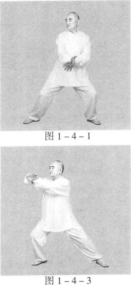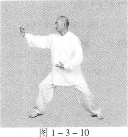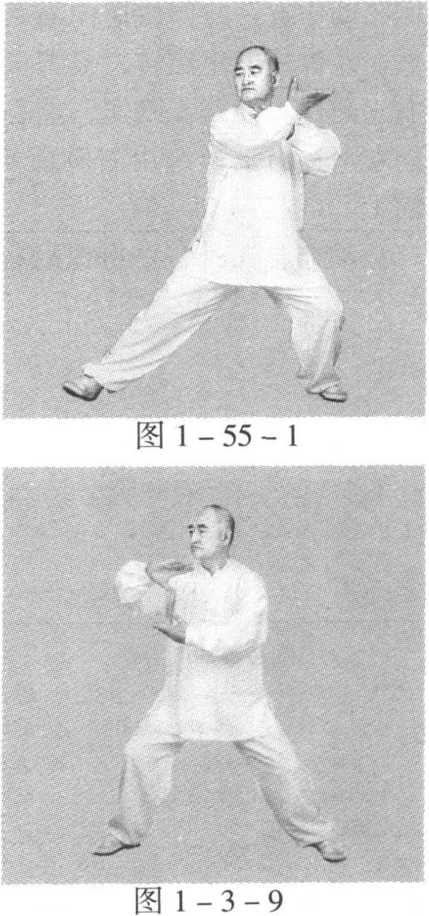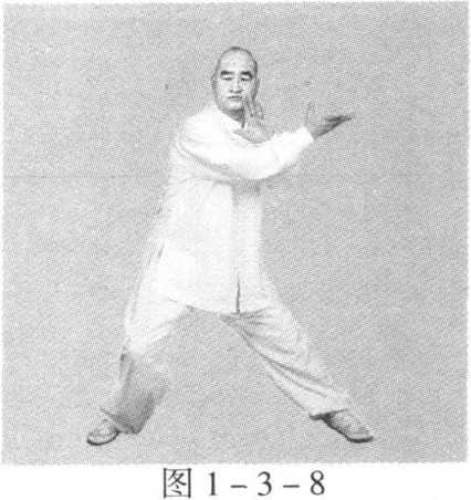 动作二至动作四与第三势懒扎衣动作四至动作六相同。(图1 -3-8)至(图 1 一3- 11)
