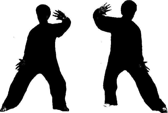 动作一:由左单云手(图2-32)起势,身体微 左转,右手由右腰间顺缠划弧下沉于小腹前;左 手变逆缠上撷,目视右前方(如图2-37)。动作二;接上势,身体先左后右转,重心由 左腿移至右腿;同时右手向左向上,变逆缠向右 上搠,左手划弧顺缠里合于小腹前,目视左前方 (图2-38)。这样反复循环运转,练习旋转腰,两 臂左右缠丝,周身协调一一致。图 2-37 图 2-38