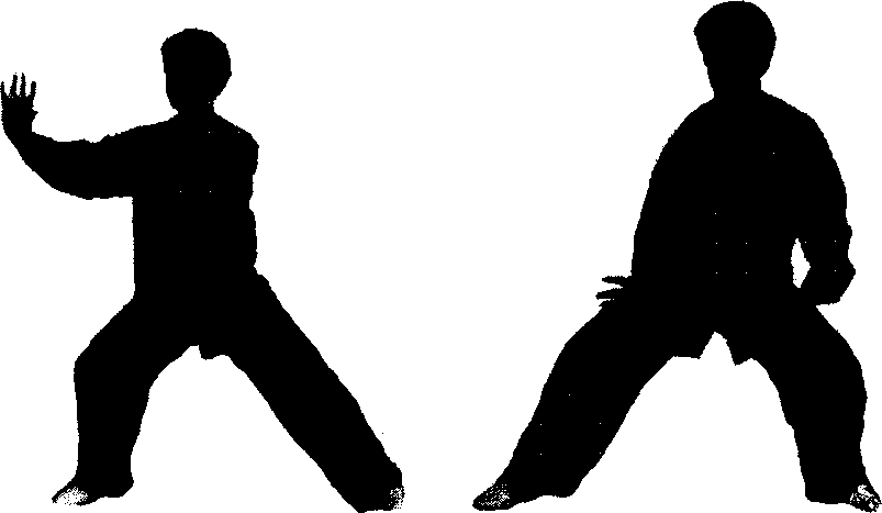 要求:手合脚开同时进行并协同一致,手到 脚到,开步要轻灵自然。此动呼气。