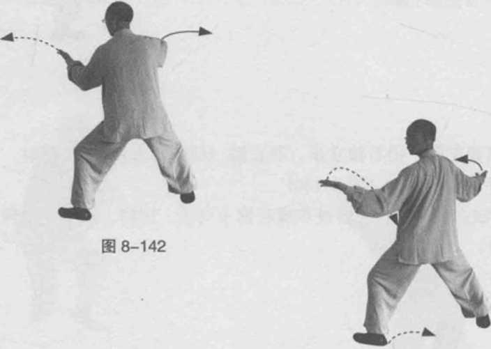 2 左挤法。左转身。同时双手顺缠外后开。(图8-143)