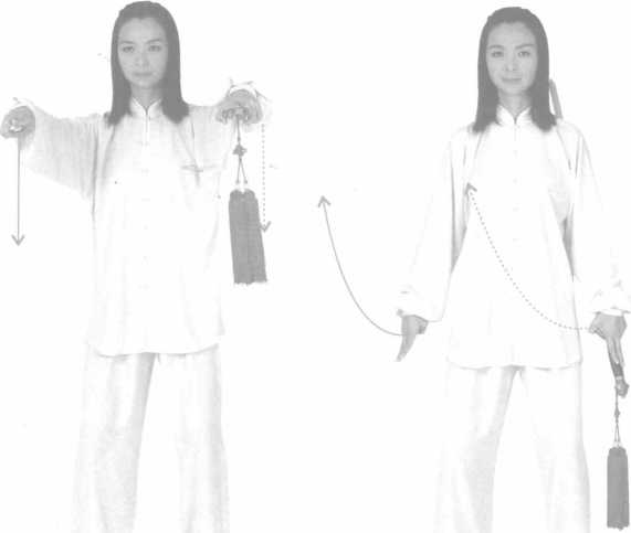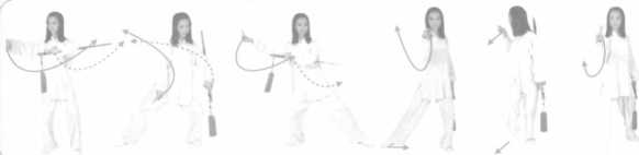 扫法:平剑,向左(右)横出,与小腿肚同高为扫,力达剑身。
