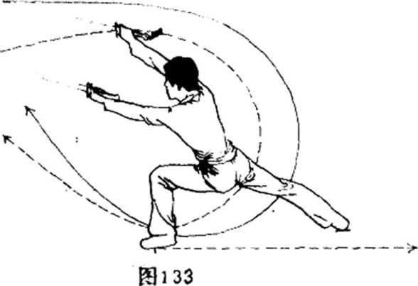 图133的动作文字说明与第三排子第四十一组合图106的说明相同,不同的是方向相X。
