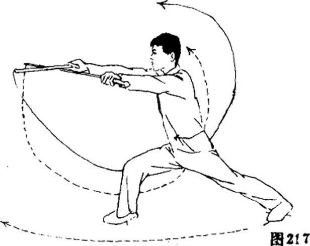 ①图217的动作文字说明与第七排子第八十丸合组图194 的说明相同,不同的是方向相反.②图218的动作文字说明与第七排于第八十九组合图195 的说明相同,不同的是方向相反.图218③ 图219的动作文字说明与第七排子第八十九组合图196 的动作说明相同,不同的是方向相反.④ 图220的动作文字说明与第七排子第八十九组合图107 的说明相同,不同的是方向相反.图220第九排子