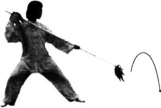 要点:拿枪时枪杆贴身滚动,枪尖向上挑到最高点画弧,弧 的半径要小,枪缨不散乱地从左向右翻过枪杆。