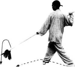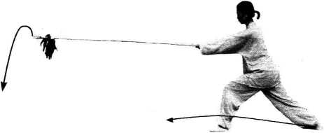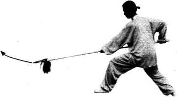 (1)右脚向前进步,脚尖外摆45。左右。在进步的同时右臂 屈肘扬手翻腕。同时左手放松握力向前伸臂滑杆。左臂外旋,手 心朝上,做拦枪动作。目视枪尖(图8)。图8(2)上动不停。左脚进步。右手向下翻腕,同时左臂内旋 翻腕,手心向下,做拿枪动作。目视枪尖(图9)。图9(3)上动不停。左手放松握力,同时右手推枪,做扎枪动 作。目视枪尖(图10)。图10要点:动作要连贯有力,力贯枪尖。见基本动作的拦、拿、 扎枪的要求。