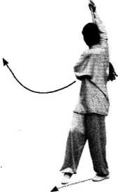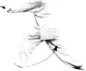 (1)右脚回撤,前脚掌着地成虚步,同时枪尾上挑,贴身 体的右侧向上、后、下、前上方划弧450。。左手推动枪杆,使 枪尖经胸前到右腋下,枪尖朝下,枪杆竖直。目视右前方 (图 31)。(2)上动不停。右脚向前进半步,左脚进步。两手放松握 力,使枪杆下滑,眄I时向前挑枪。左膝半屈,右腿挺直。目视枪 尖(图32)。图32要点:做挑枪时枪尖顺右腿的外侧向下滑杆,滑杆与挑枪同 时进行。挑枪要有力,力达枪尖。