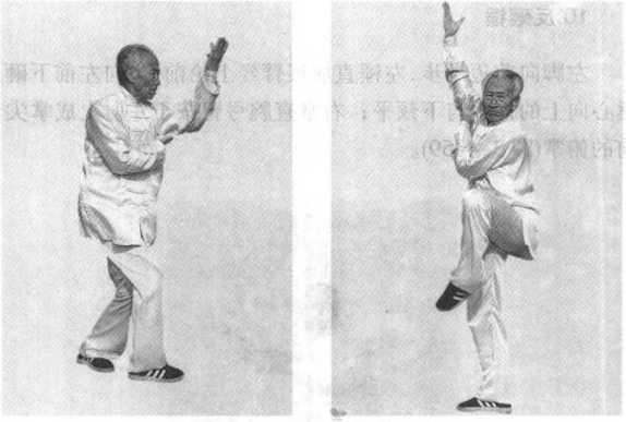 要领:与4.弓步撩掌动作相同,惟右掌上撩不同。