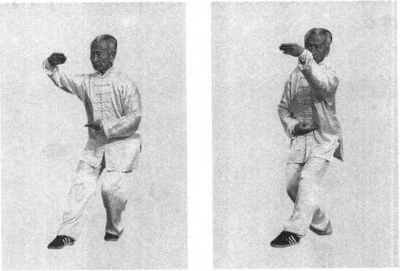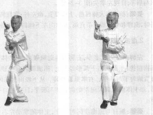 要领:转体要快,动作协调一致;上体正直不后凸胯;虚步大 腿膝胯接近平,小腿下竖,脚尖点地;支撑腿半蹲,脚尖外摆;屈 肘,力达掌背。