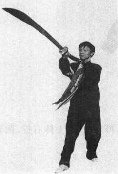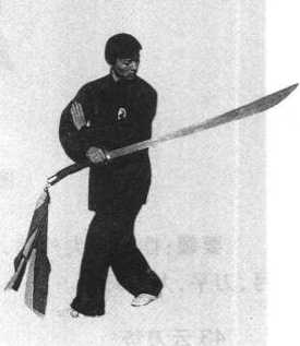 要领:扣步成八字形,步距一脚长,支撑腿下蹲低为佳;上 体左拧最大,两臂弓形,刀平,力达刀刃。