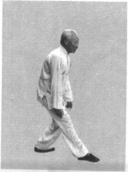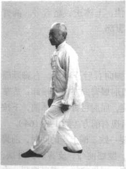 接上动。左脚U侦右脚后向后退步,右脚里合步,顺左脚内侧向