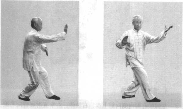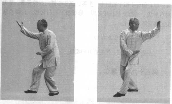 攻,卸后必攻为正确的技击法则。进法一般由步和身法的动作来 配合掌的攻击运动,有正面进法、侧面进法、三角步进法(图 1-3-166、图 1-3-167、图 1-3-168 )□