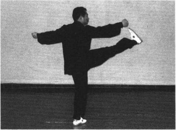 1 .此式与第三十六式左蹬一根要求相同,不同点是一左一右。
