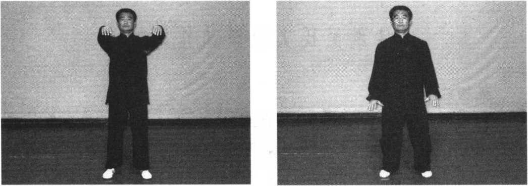 71图I传统陈吴太极拳械传统陈吴太极拳械图2图2721721随后向前平视。(图4)随后向前平视。(图4)图3 图4图3 图4传统陈吴太极拳械传统陈吴太极拳械图2图2721721随后向前平视。(图4)随后向前平视。(图4)图3 图4图3 图4预备式 1动重心慢慢移向右腿,左腿放松,横开左脚与肩同宽,先落脚掌, 随之重心向左腿平均,左脚落平,两眼向前平视。(图2)起式 2动1 .两腕慢慢向前伸展上起,与肩同高,与肩同宽,两眼向前平 视。(图3)2 .身向下蹲,两掌下按至胯旁,掌心向下指尖向前,眼随手动,