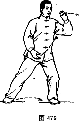 脚尖均向前;目视右手(图479至481) O 接上动,云手出步。
