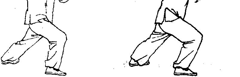 接上动,上体向左转45。(面向正北)3随转体右 脚踏实,身体重心在右腿;提左膝,脚自然下垂;双