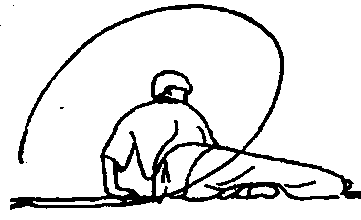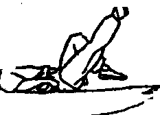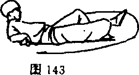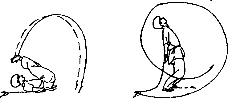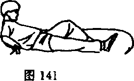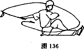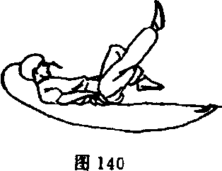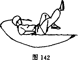 ⑦身体快速后倒,臀部及两腿抬起,使鞭从体下扫出(图 142)O