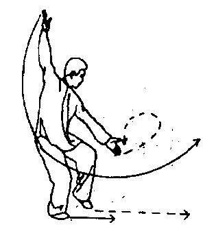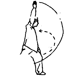 掌直臂向前、向上抡绕,左掌下落,直臂前挑 左掌(图156)O