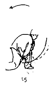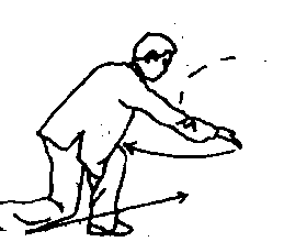 右脚向后插步; 同时,右掌下落,以 掌心擦挂右腿外侧, 经腹前向上,从频下 向前惮出,与头同 高,肘关节微屈,左 掌以掌心擦挂左腿内 侧,向左、.向前经右 腋下以掌心抽拍后 背;目视右掌(图152)。