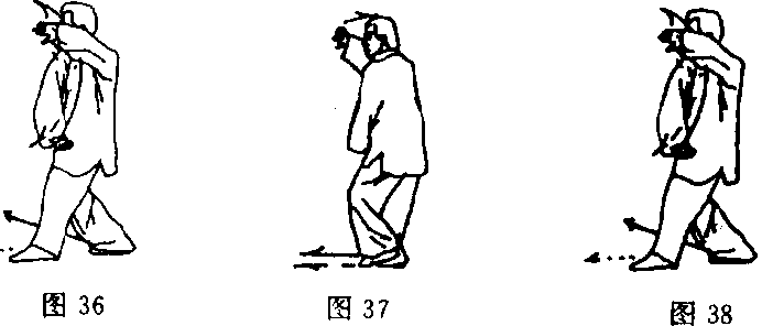 ③左脚向左前方进一步,右脚随之跟进一步停于左脚内侧,