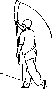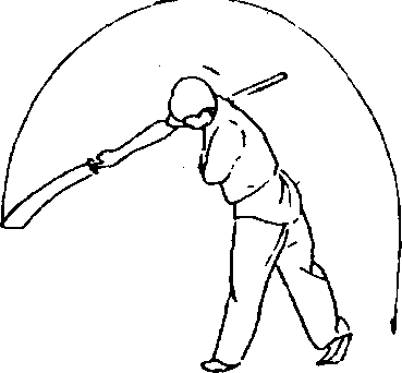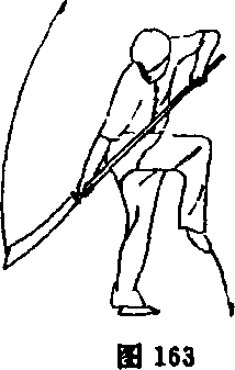 立圆,撩至身体右下侧,刀刃朝下;目视刀身(图163)。