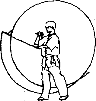 ⑥右肘自右经前上向左弧行绕动,同时鞭头自右向上方经前绕 至右前下方(图31)。