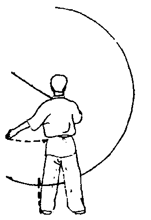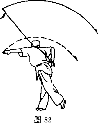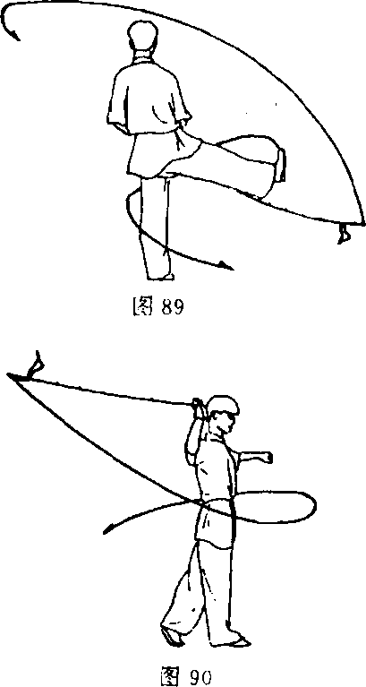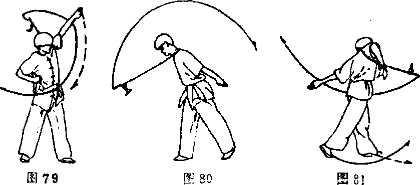 ⑥头经上向左下甩动,使鞭自右前方经上绕至右前下方,同时, 身体左转180度(图81)。