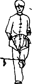 左腿向左后弧行拨扫,拨扫与 上摆右小腿要前后协调进行。