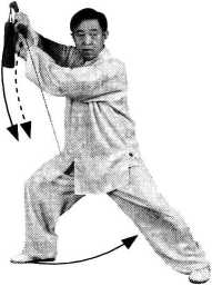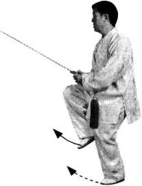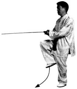 【要求】剑从身体左侧转一周上提时,要松胯塌腰,松肩沉肘,气沉脚跟。
