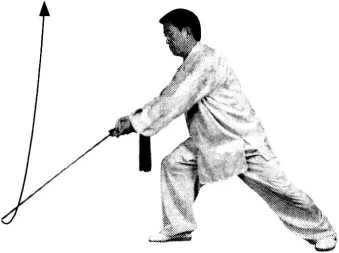 【要求】刺剑时,随重心前移,塌腰松胯,劲贯剑尖。