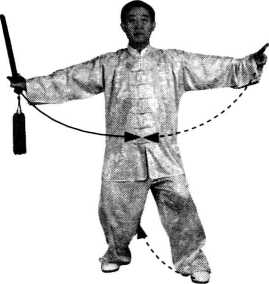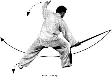 【要求】转剑折腕与转身要协调一致。