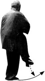 重心下踞,右脚尖内扣,收折左胯,左膝向右 胸前上提,同时向左转体;右手剑下落,臂外旋, 用前下刃反手平剑向左腿外侧下截,手心朝上,剑 尖与右膝同高;左手剑指下落,附于右手腕处,手 心朝下;胸向东北,目视剑尖。(图161)